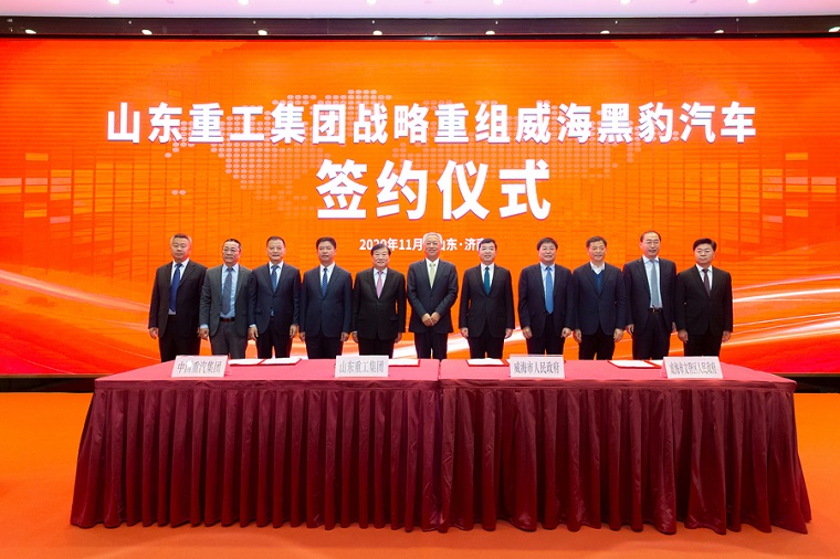 11月10日上午,山東重工集團戰略重組威海黑豹汽車簽約儀式在山東濟南舉行。山東重工集團、中國重汽集團與威海市政府、文登區政府簽署四方協議。中國工程院院士、山東省副省長凌文及省國資委、省工信廳、威海市、文登區相關領導出席活動。